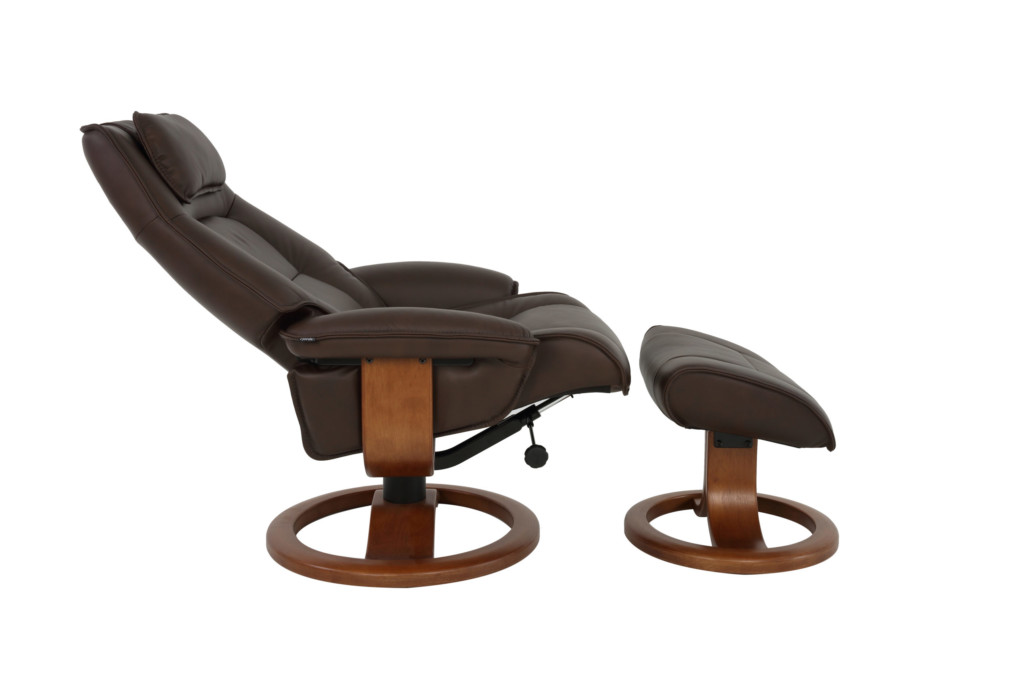 The Fjords Admiral R chair provides continuous support for your legs and back, with bases which have a 360 degree swivel. The base is produced in laminated, stained rubberwood which gives it an elegant character. Available in all our leather and select fabrics, the Admiral features an adjustable head pillow for maximum comfort and a manual release adjustable headrest angle. The chair is available in two sizes, small and large.