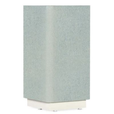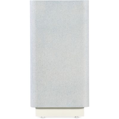 Serene and stylish with a spa-like color scheme, the modern Atlantis Accent Table has a small compact footprint, rounded corners, a painted tempered glass top, raffia-wrapped exterior and white plinth base. The top is painted in a creamy white, and the raffia wrap is in a pale blue tone inspired by Caribbean beaches.