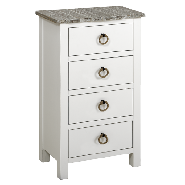 Boardwalk Top, White Base with Antique Highlights, 4 Drawers with Metal Glides