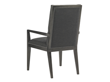 The Vantage Upholstered Arm Chair features clean lines. Its Gray Mist fabric consists of a soft linen weave and is accented with nailhead trim resulting in a highly tailored look.