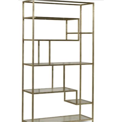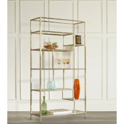This beautifully-scaled and designed, light-and-airy etagere offers seven glass shelves and a champagne finish. Crafted of iron with glass and silver-leaf accent with a gold finish for a touch of sparkle in your home.