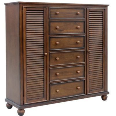 Quality-built to maximize your bedroom storage space, the Nantucket Chifferobe in Allspice Brown won’t disappoint! Designed with six central drawers and two side doors, including five interior shelves, the individualized compartments are plentiful. Each drawer is constructed with English dovetail joints, full-extension glides and high sides front and back. The top drawer is felt-lined for delicate items. Available in White or Allspice Brown.