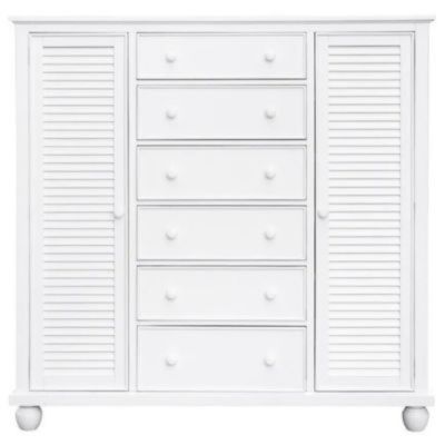 Quality-built to maximize your bedroom storage space, the Nantucket Chifferobe in White won’t disappoint! Designed with six central drawers and two side doors, including five interior shelves, the individualized compartments are plentiful. Each drawer is constructed with English dovetail joints, full-extension glides and high sides front and back. The top drawer is felt-lined for delicate items. Available in White or Allspice Brown.