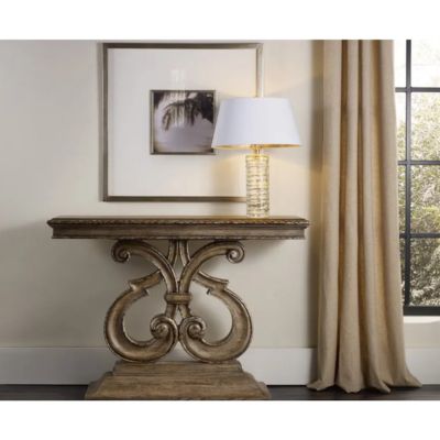 Exuberant design, bold scale and exquisite details come together to create a luxurious focal piece in the Mélange Console Table, featuring a romantic lyre-shaped base and a relaxed rustic light wood finish with gold tipping on Oak, Walnut and Ash Veneers.