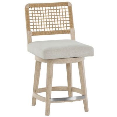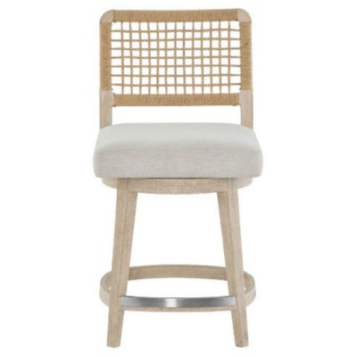 The Dockside Swivel Counter Stool features a Danish cord woven backrest and comfortable Nomad Snow upholstered seat that combines texture and comfort. This counter-height stool showcases a warm Dockside oak finish and swivel functionality, making it both stylish and practical for kitchen islands or bars.