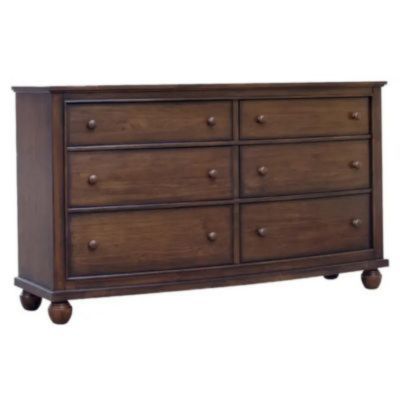 Hand-crafted, the Nantucket Dresser in Allspice Brown has six drawers for your bedroom clothing or linens. Two slightly smaller top drawers are felt-lined for delicates and the four drawers below are larger for maximum storage space. Each drawer is built with English dovetail joints, full-extensions glides and high sides. A matching mirror is sold separately. The Nantucket Dresser is available in White or Allspice Brown.
