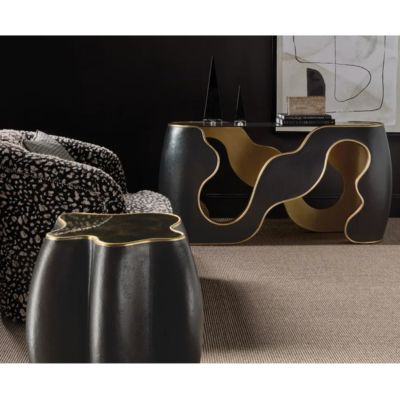 Elegant in contrast, the Even and Flow Console Table features a black exterior, gold interior accents, and a smoked glass top. Its minimalist lines and luxe finish create a sophisticated moment in entryways or living…