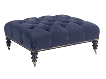 Whether it’s used as a plush extra seat, or as a supporting table, the Victoria Cocktail Ottoman serves in style. Deep tufting accents the top, bordered with antiqued bronze nailhead trim.
