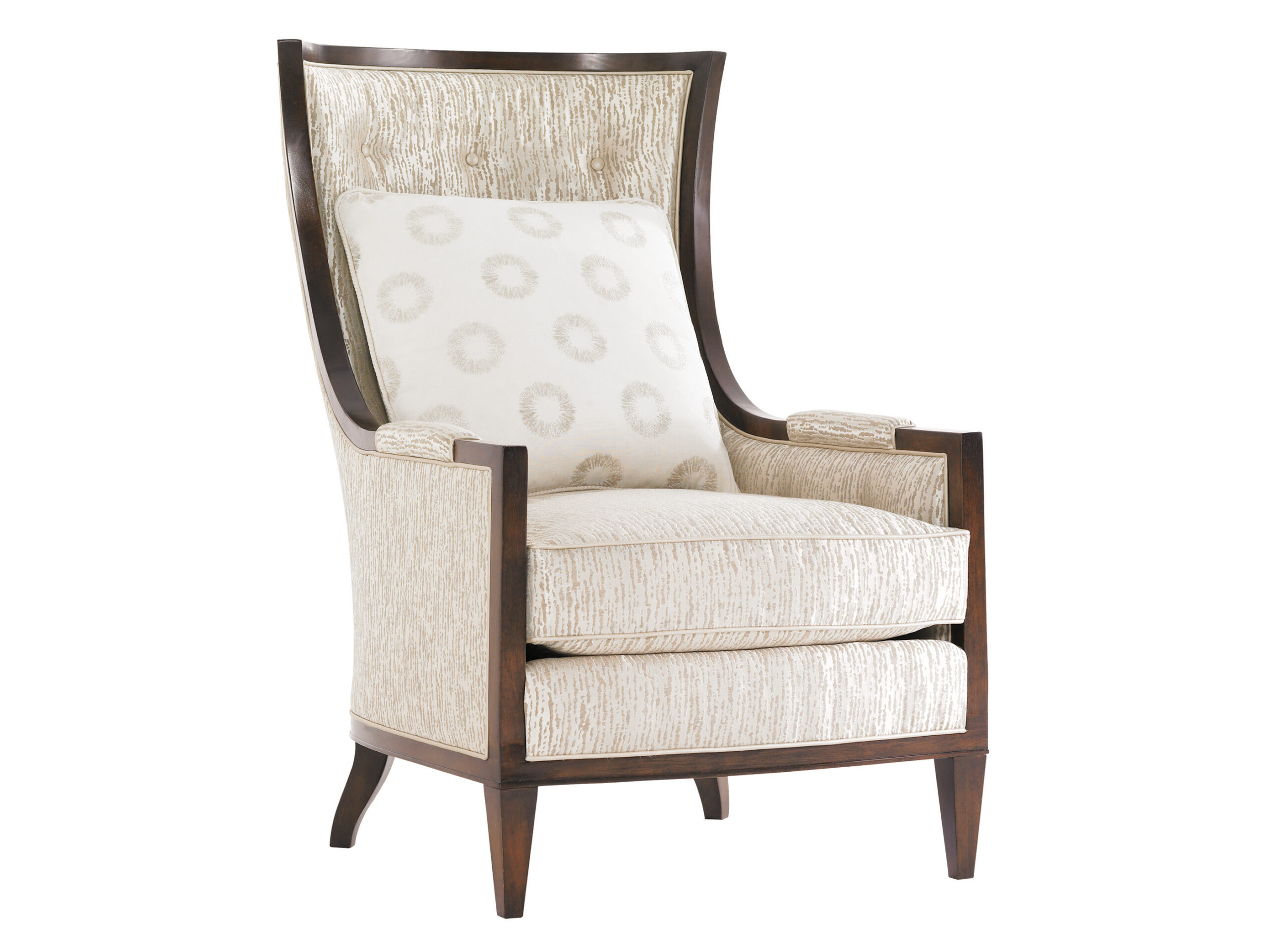The upscale traditional styling gives a nod to wing chair design, button tufting skills, and exposed wood craftsmanship with its shapely silhouette combining all three. Pair elegance with comfort by selecting any custom upholstery finish and custom fabrics. Add your own detailed flair with contrasting arm pads, contrasting buttons, or contrasting welt.