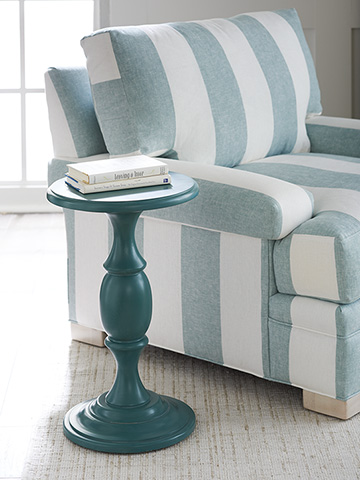 Perhaps the most versatile piece in the collection, the Yacht Club martini table is a classic chairside piece, available in the Sandstone, Sailcloth, Marine or Seaglass finishes. It is a great way to add an interesting pop of color to the room, while offering the perfect place to set your drink.