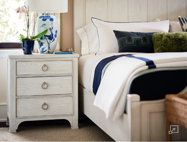 Add a soft touch to bedroom spaces with the Escape Nightstand, a clean bedside punctuation with simple lines, three drawers, and complementing ring-pull hardware.