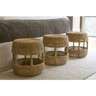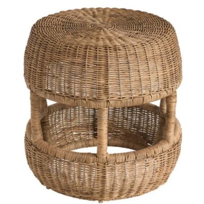 The Oasis Stool is crafted from woven slimit material, bringing natural texture and versatile functionality to any space. Its drum-shaped silhouette and open center creates visual interest while serving as the perfect accent piece for a variety of design aesthetics.