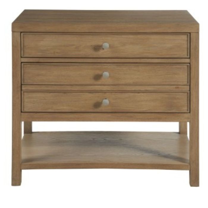 Featuring a combination of enclosed drawers and a lower open-air shelf, the Saugatuck Nightstand enhances bedsides with a lighthearted appeal.