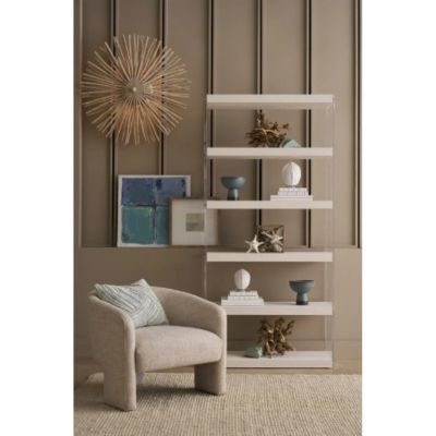 The Etagere features a crisp Shoreline finish with acrylic end supports for a light, airy appearance. The Shoreline Etagere provides ample display space while the transparent elements create a sense of openness perfect for your coastal-inspired home.