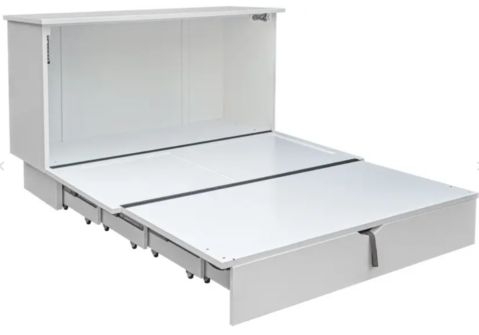 The Cape Cod Sleep Cabinet is truly unique! Quality-built for function and style, this sleep cabinet enhances your bedroom or guest room with its fresh white finish. The cabinet front has hand-placed slats with a subtle arc atop each panel. A queen-size bed easily pulls out with the cut-out handle on the recessed base. Standard opening or Telescopic pull-out mechanism available.