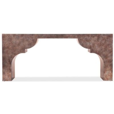 Earthy and artsy with a hint of Moroccan flair, the Taj Console has a mottled brown silver leaf finish and shaped scalloped legs. With a rectangle shape, the console measures 84 inches wide by 18 inches deep.