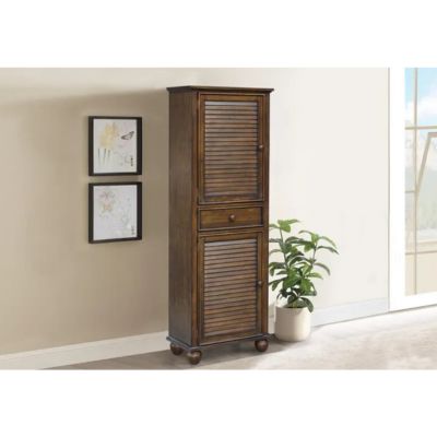 The Nantucket Tall Cabinet in Allspice is meticulously hand-crafted from solid wood. Designed with a top and bottom door that house two interior shelves, then complemented by a single central drawer, your storage space is ample. The drawer is built with English dovetail drawer joints, corner blocking, center supports and full-extension ball-bearing glides. The doors feature hand-placed louvres for a unique shutter design.