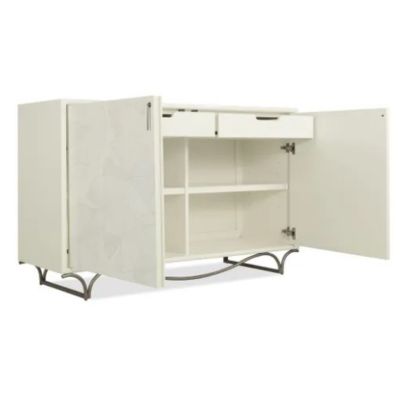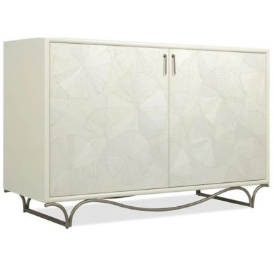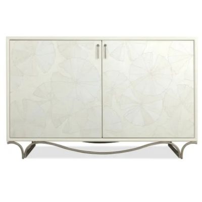 An ode to organic elegance, this chest showcases intricate lily pad marquetry over a soft white painted finish. With inner storage and a leafed metal base, it brings an artisan-crafted focal point to refined.